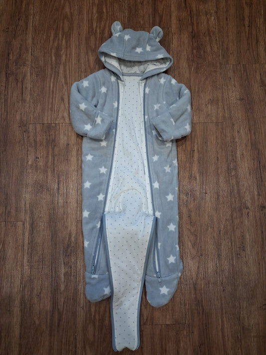 Lined Light Grey Stars Furry Pramsuit With Foldover Cuffs - Unisex 6-9 months - M&S