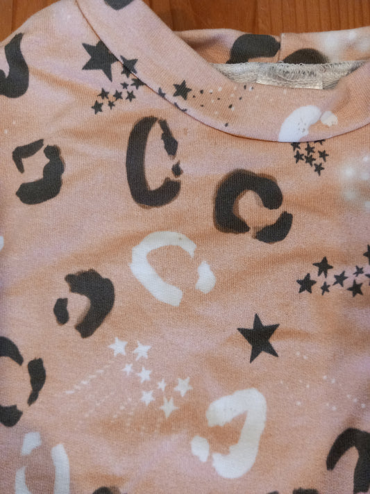 Handmade Light Pink Animal Print & Stars Long Sleeve Top/Sweatshirt - Girls 3-4 years - Popsy & Mama