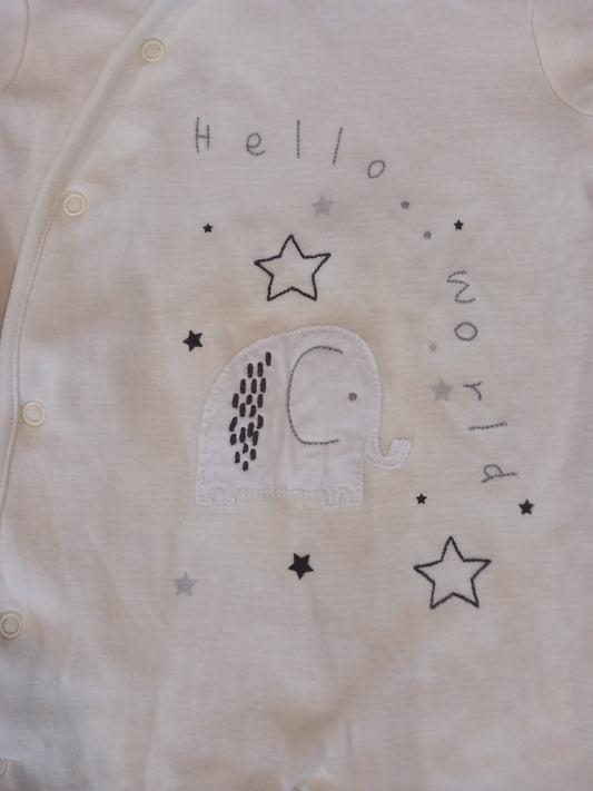 'Hello World' Elephant Short Sleeve Romper - Unisex 6-9 months - Mini Club