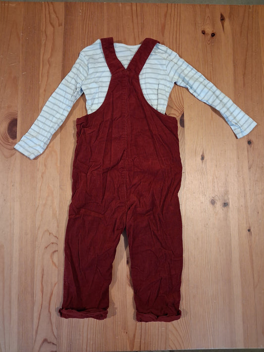 Dark Red Fine Corduroy Dungarees & Long Sleeve Bodysuit Set - Boys 18-24 months - TU