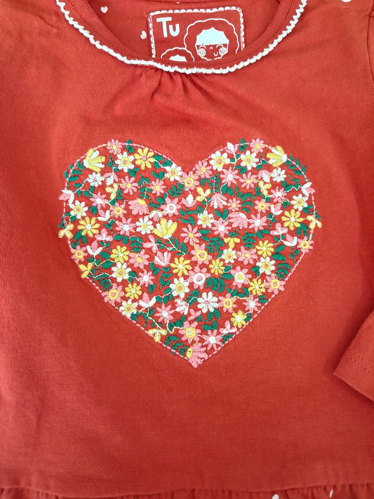 Red Flower Heart Long Sleeve Top - Girls 6-9 months - TU