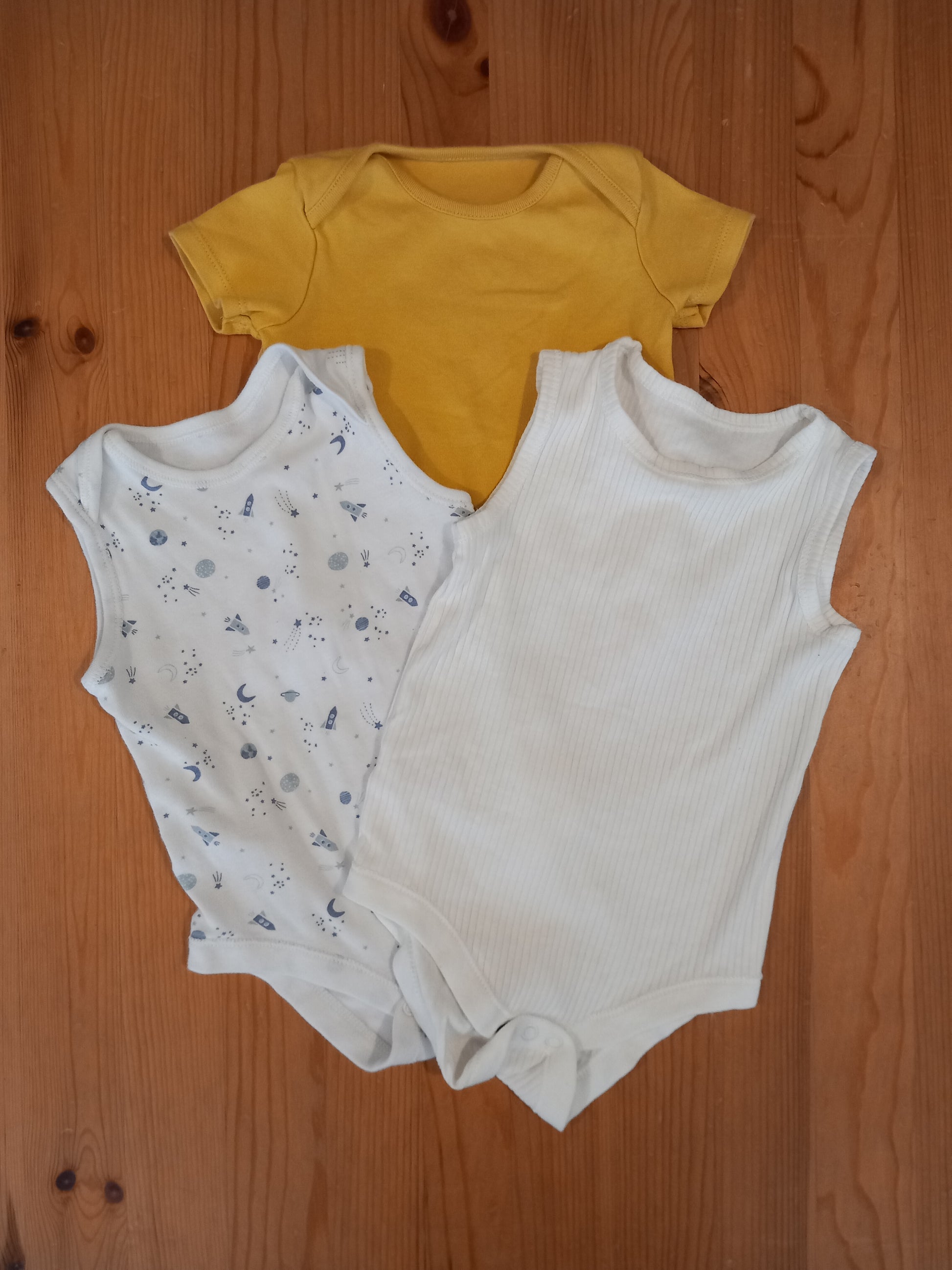 3 x Short Sleeve/Sleeveless Bodysuits - Boys 9-12 months - Mixed Brands