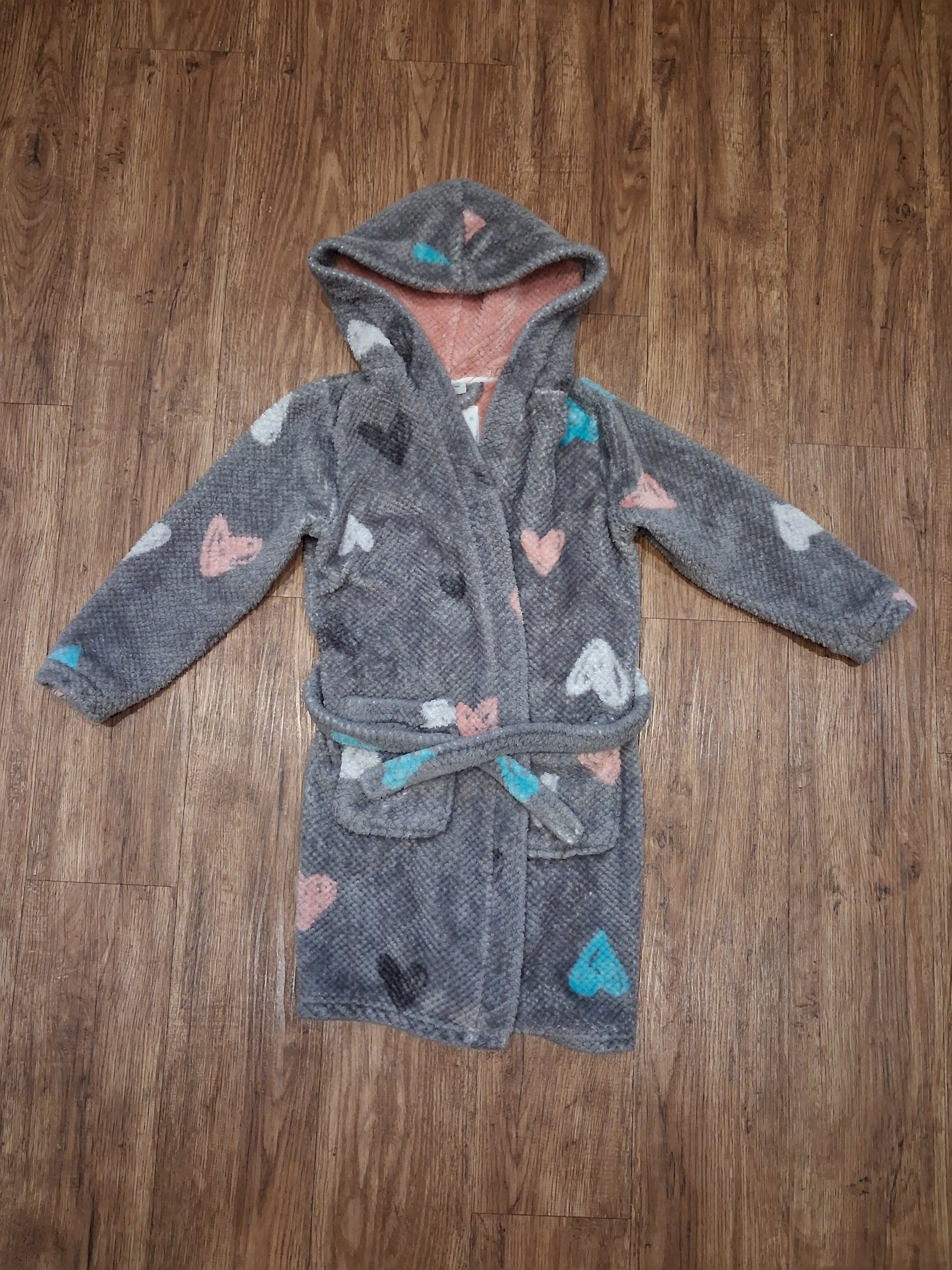 Grey Hearts Furry Dressing Gown - Girls 5-6 years - TU